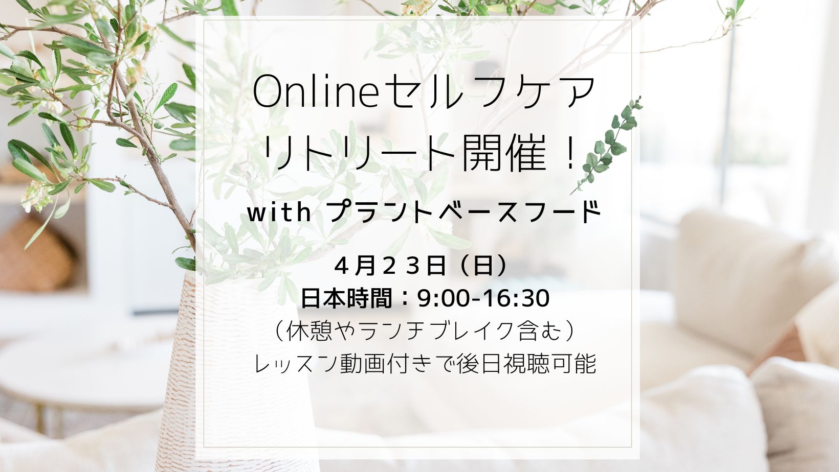 自宅に居ながらリトリートを体験出来たらいいなとの思いで、今回のオンラインセルフケアリトリート with プラントベースフード開催を企画しました。