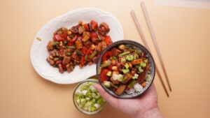 中華料理のカンパオチキンはアメリカ🇺🇸でも人気メニュー。チキンではなく、テンペで作ります☺️